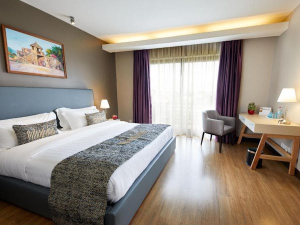 This room is equipped with a double bed and a separate bathroom with a walk-in shower, washbasin and toilet. It comes with a courtesy tray with tea & coffee.